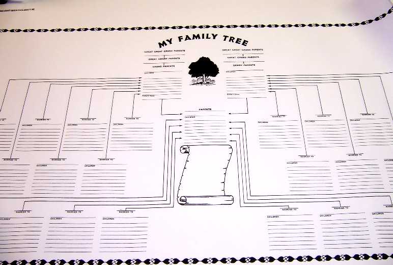 Family Tree Wall Chart 18 x 32 inches, black and white. Large Family Tree chart with room for at least 4 Generations. |